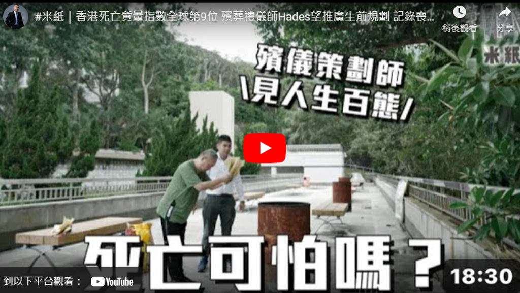 米紙|香港死亡質量指數全球第9位 殯葬禮儀師HADES望推廣生前規劃 喪妻者陪太太撒灰最後一程